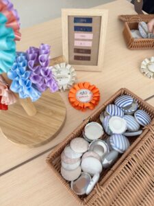はじめましてのママたちでも、ロゼットの生地を選びながら談笑♪